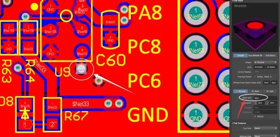 Cause Analysis: Please see Figure 1, when using DFM manufacturability testing, it indicates many leaks. After checking the cause of the leakage problem, one of the vias in PADS was designed as a semi-conducting hole, resulting in the design file not outputting the semi-conducting hole, resulting in a leak, see Figure 2.
