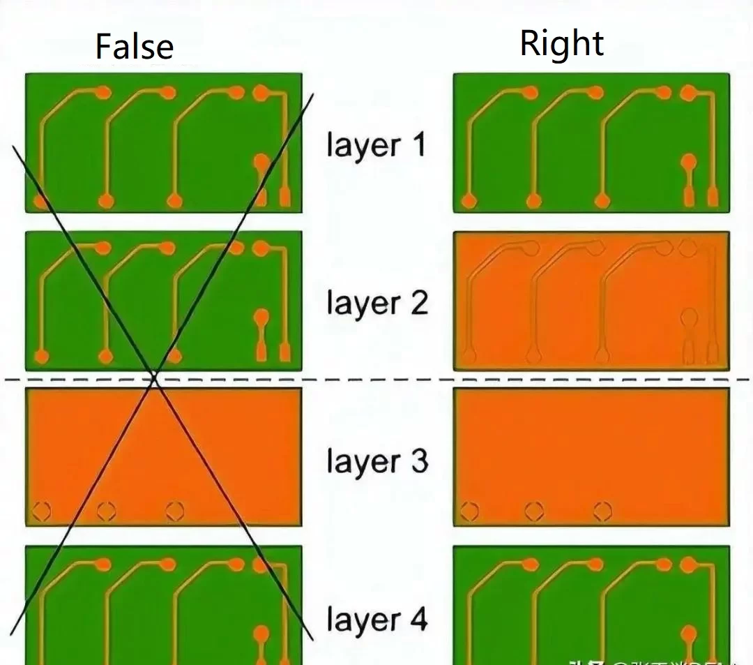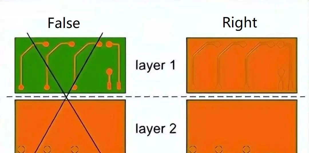 8. Uniform trace Conductor traces should be evenly distributed on the circuit board. Avoid copper sockets as much as possible. Traces should be distributed symmetrically on each layer.
