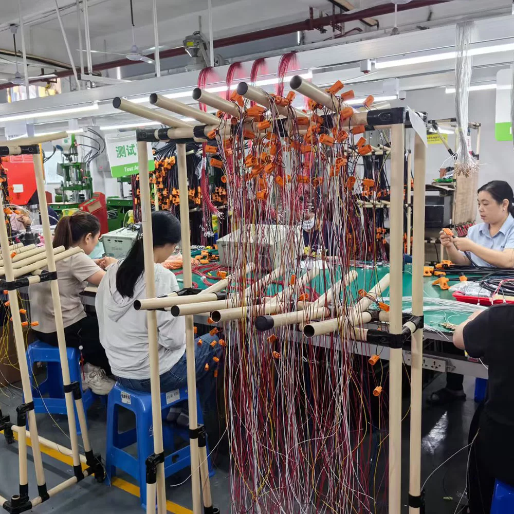 The cable & wire harness assembly manufacturing process includes wire cutting, insulation stripping, wire stripping, splice, twisting, tinning, soldering, inner mold shaping, wire twisting, terminal crimping, sleeving, loop testing, tubing, cable tying, injecti onmolding, labeling, conduit threading, coiling, packaging, and AQL Inspection. However, not every process incorporates all these steps. The specific workflow is determined by the client’s design requirements, ensuring a customized approach to each cable assembly project.
