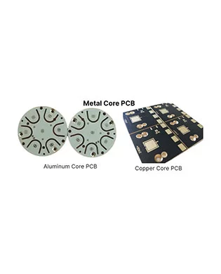 The metal substrate in metal-based printed circuit boards (PCBs) is typically made of materials such as aluminum, iron, copper, indium copper, and tungsten-molybdenum alloys.